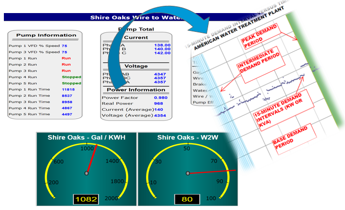 A: We have power monitoring and energy use dashboards installed at several American Water facilities, allowing operations and engineering the opportunity to monitor real time energy use. Power use data at 15-minute intervals are possible at these locations, which is the same interval that the energy utility utilizes for demand billing. This real time energy usage is a key component in helping to ensure we do not exceed our historical peak demand, thereby effectively managing energy cost.
