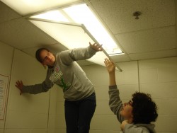Armed with watt meters and turn-off-the-light stickers, the Green Eagles swapped out inefficient incandescent light bulbs for compact fluorescent lamps. They also helped their peers set energy-efficient power settings on their laptops, urged students to take part in their “Thanksgiving Shutdown” and collected signatures for a sustainability pledge from 20% of the residential student body.