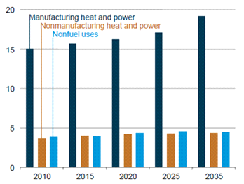 Industrial delivered energy consumption by application, 2010-2035 (quadrillion Btu) Source: AEO 2012, fig 82, p. 81. |